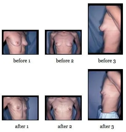 In these pictures, you see the the result of a nipple sparing mastectomy in the first row, and the results of the breast reconstruction in the second.