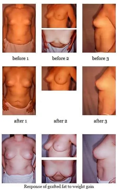 Using living fat for breast augmentation has many advantages, the most important of which is that the amount of fat which survives becomes a permanent, living part of you. An “autograft” refers to tissue taken from the same individual into which it is grafted. Fat cells can be successfully transferred from one part of the body to another, using highly specialized techniques that do not kill the cells. Do not consider laser liposuction or ultrasonic liposuction for harvesting the fat. These methods kill the fat before removing it, and will render the procedure unsuccessful.